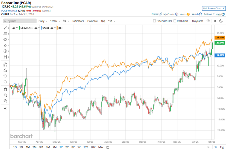 PACCAR Inc (PCAR), based in Bellevue, Washington, focuses on designing and building light, medium, and heavy-duty trucks through brands like Kenworth, Peterbilt, and DAF. It further offers parts, financing options, and specialized engines. The company has a market capitalization of $64.55 billion